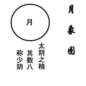 月者太阴之精,象坎卦,其数则八。而称少阴者,谓坎卦,上下俱短中实,则长成五画,而兼乾之三画故称其八。而为少阴者,坤地之道大有所载,名之老阴。月之光明有圆有缺,出则为夜,照耀无穷,如地之大故称少阴。夫日月为天地之子,而得兼乾,而不得兼坤,所谓子从父也。
